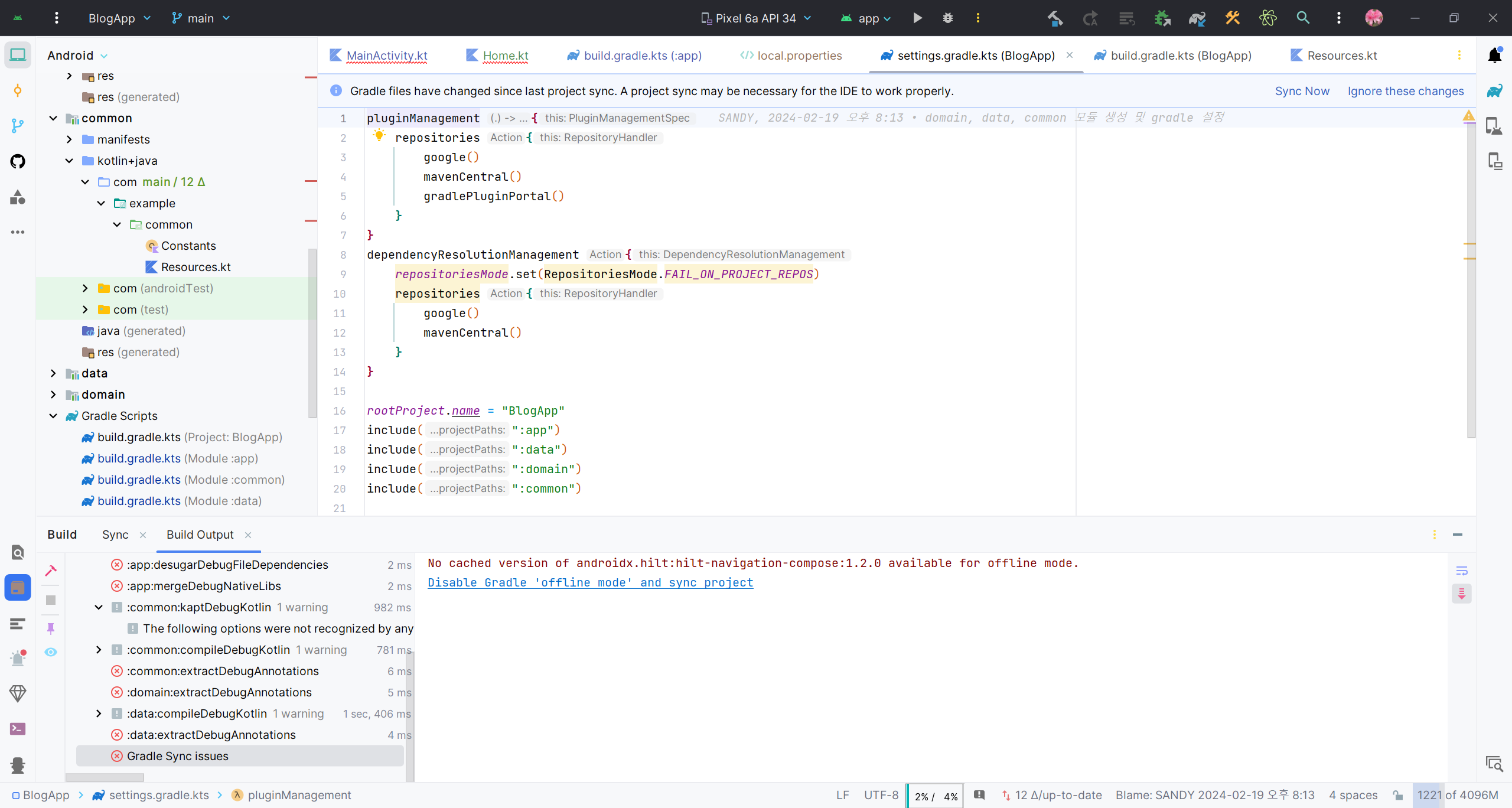 안드로이드 스튜디오 빌드 에러 : Disable Gradle 'offline mode' and sync project 해결하기 본문
