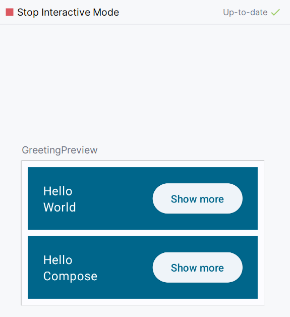 Compose를 사용하며 UI를 개발할 때의 큰 장점이다. 애뮬레이터에 앱을 빌드하지 않고 Preview 화면에서 onClick과 같은 사용자 상호작용을 테스트 할 수 있다.